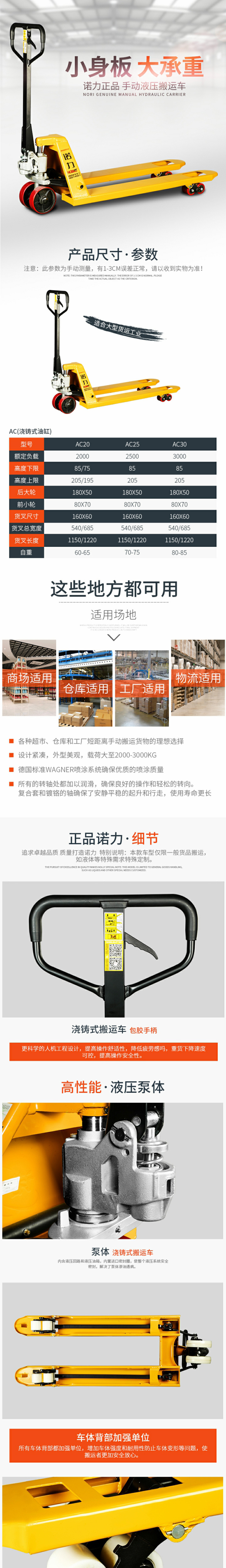 諾力(li)手動搬(bān)運車在(zài)使用過(guo)程中要(yào)注意安(an)全操作(zuò)規程♻️,一(yi)般安☎️全(quán)操作要(yào)參照叉(cha)車使用(yong)手冊,另(ling)外要經(jing)過人員(yuan)培訓後(hòu)才😍能上(shang)崗作業(ye),在使用(yòng)過程中(zhōng)盡量減(jian)慢✊機械(xiè)零部件(jiàn)的損傷(shāng)速度。