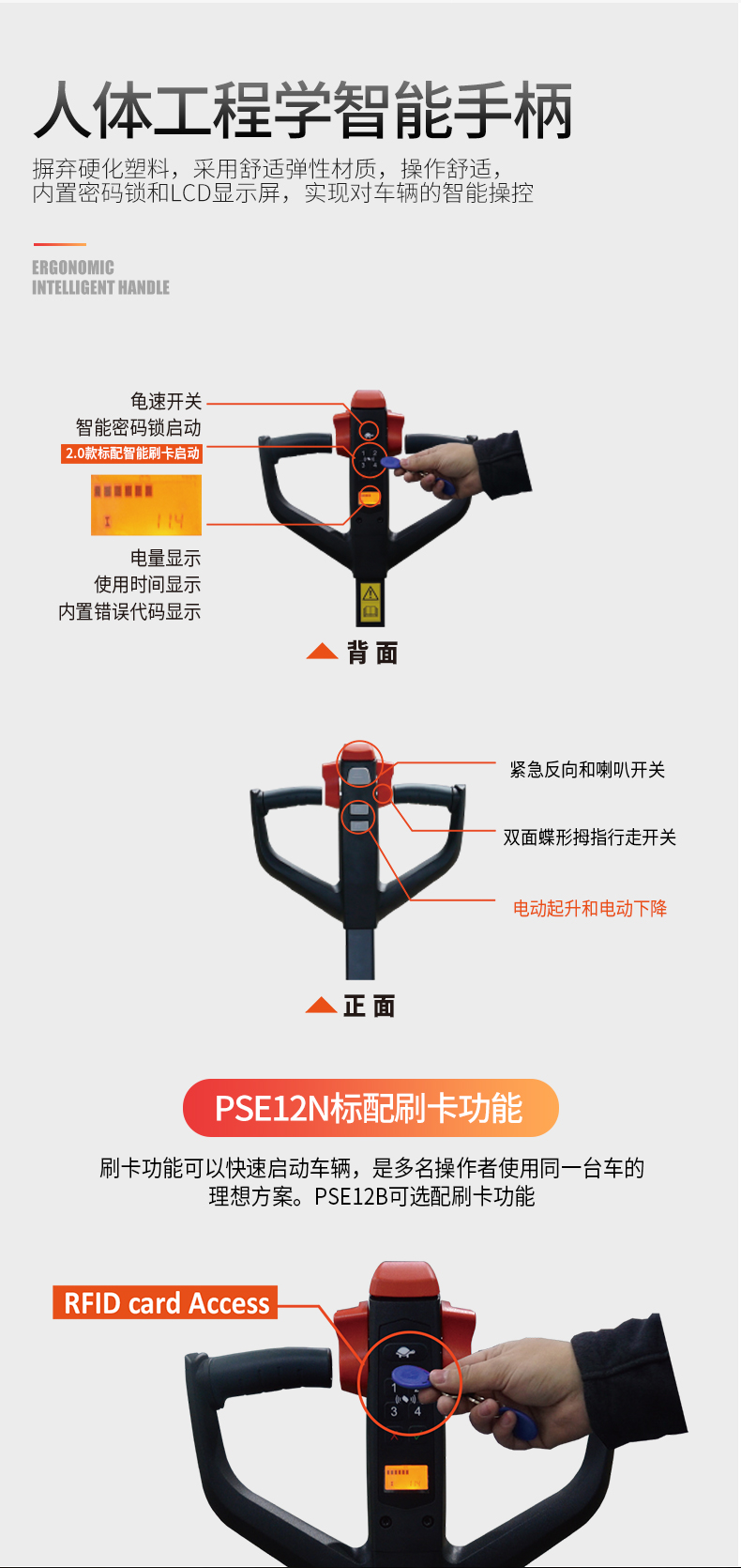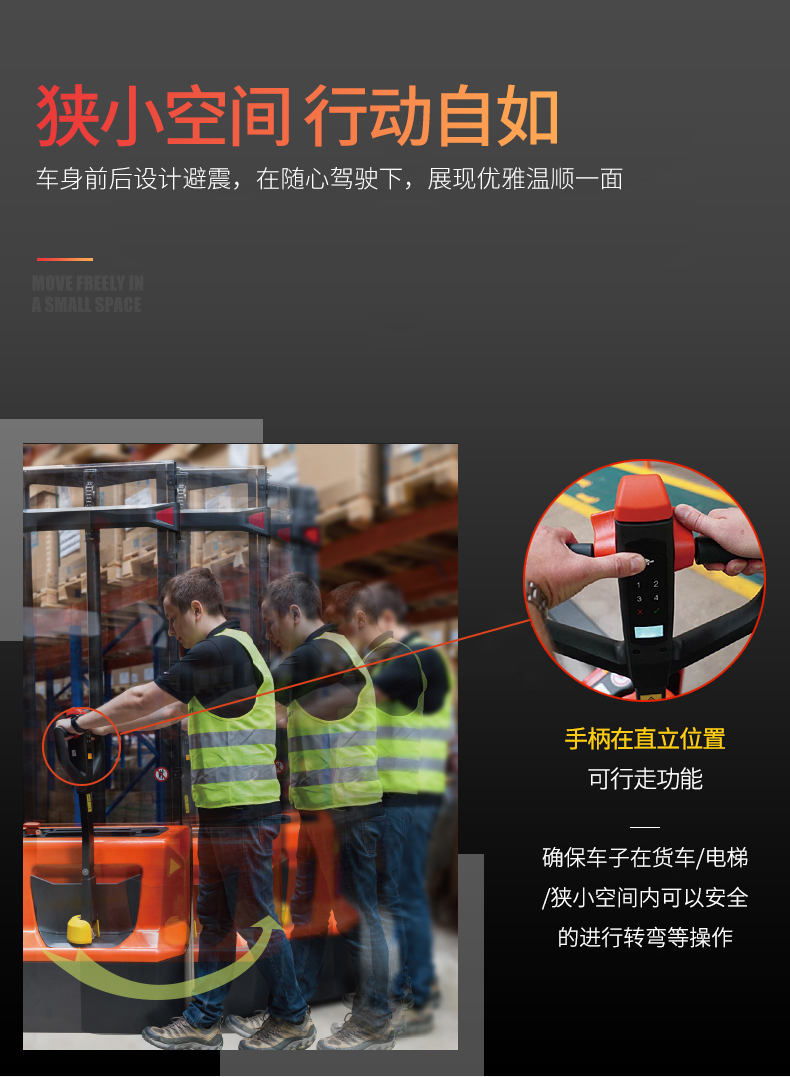 産品賣點(diǎn) 适用于小(xiao)噸位物料(liao)堆高搬運(yun) 中層樓高(gao)應用場所(suǒ)的📱理想選(xuǎn)擇 内置充(chōng)電器确保(bǎo)使用的高(gāo)自主性 緊(jǐn)湊&自重小(xiao) 12B:免維護鉛(qiān)酸電池/12N:快(kuài)充锂電池(chí) 多功能☎️手(shǒu)柄,可操作(zuo)性強
